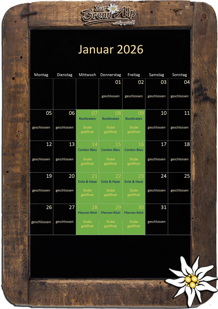 wir heißen Euch mittwochs, donnerstags und freitags von 17.00 – 22.00 Uhr in unserer gemütlichen BrennAlp-Stube herzlich willkommen!