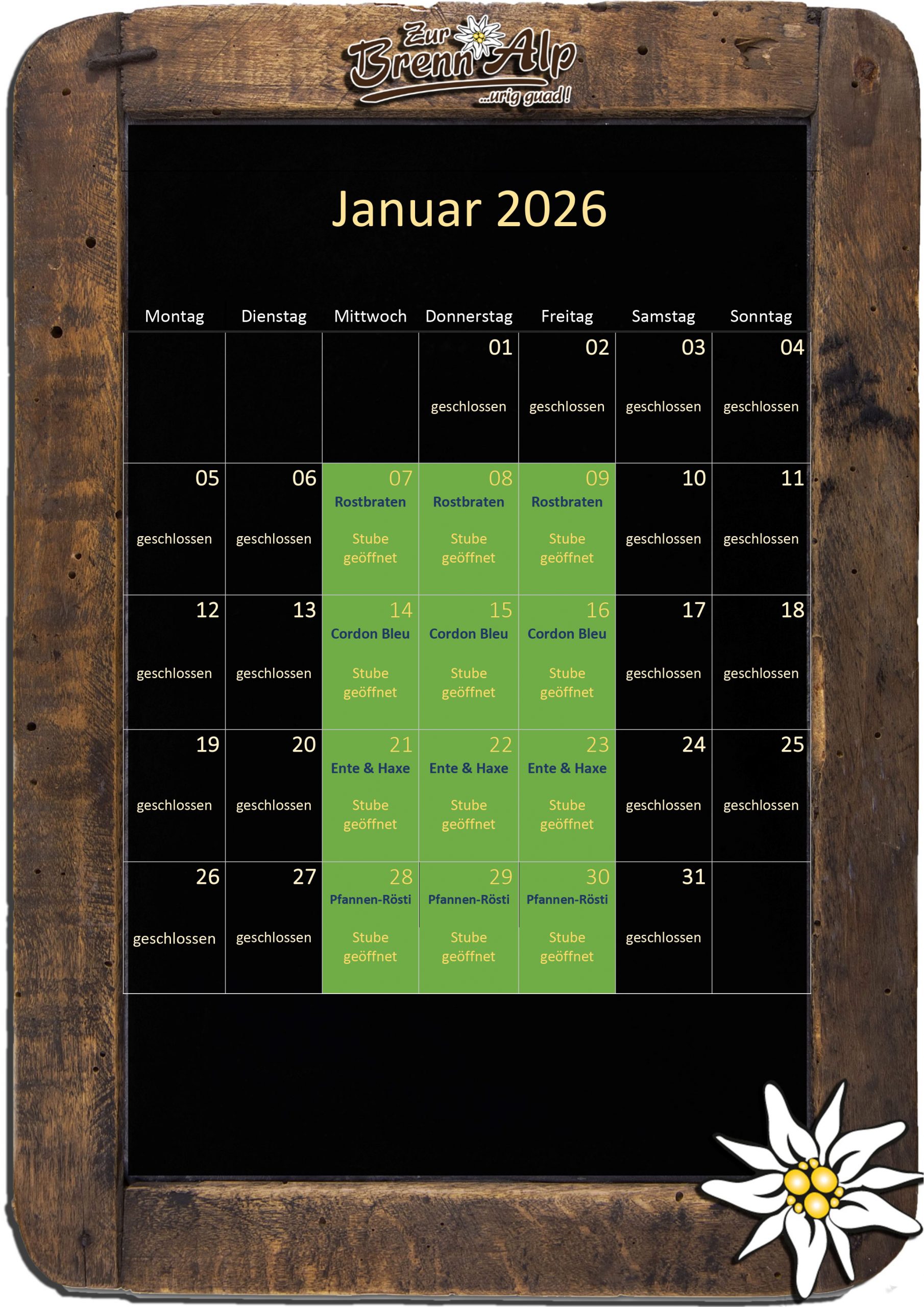 Im Januar bieten wir euch jede Woche ein wechselndes Motto, das wir zusätzlich zur normalen Stuben-Karte anbieten.